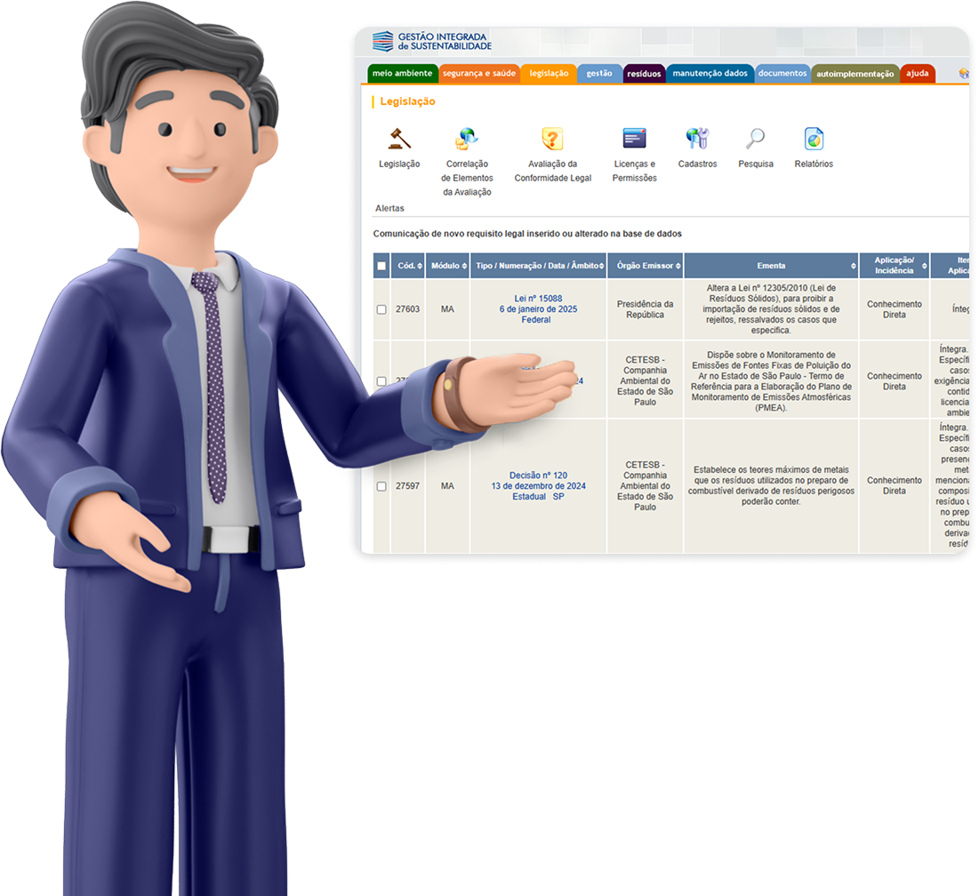 Banco de dados atualizado da legislação ambiental, de saúde e segurança do trabalho, de energia e de responsabilidade social com suporte de dúvidas.